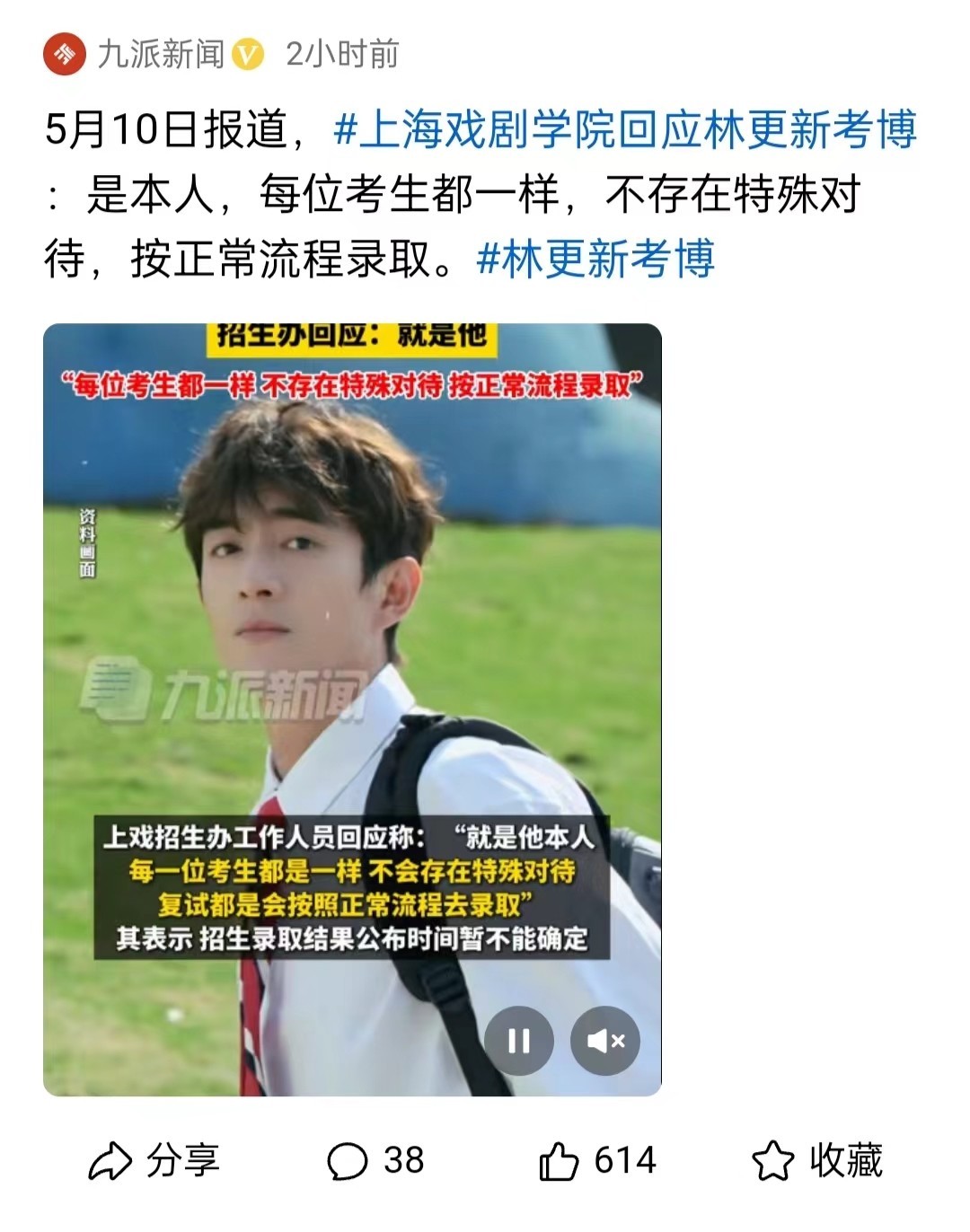 没思到过了几年,林更新又有了新倡导,5月9日,上海戏剧学院公布了一份2024年博士筹议生复试名单,林更新的名字出当前其中,专科是戏剧影视扮演创作,坊间边远合计,林更新要考博士了。