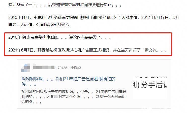 ——2015年,柳俊烈和李惠利因戏生情,2016年韩素希就给柳俊烈点赞了;