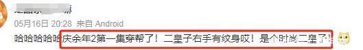 饰演二皇子的刘端端在第一集出场中就被网友发现穿帮了。在播出镜头中,二皇子的右手有纹身,被网友簸弄是“前锋二皇子”。仅仅,这个纹身镜头也不是一直存在,在一段剧情中,抬起手臂的时期纹身绝抵灭亡,只好放下来的时期才会出现,这种眨眼间有眨眼间莫得的舛讹。自身亦然一种穿帮。