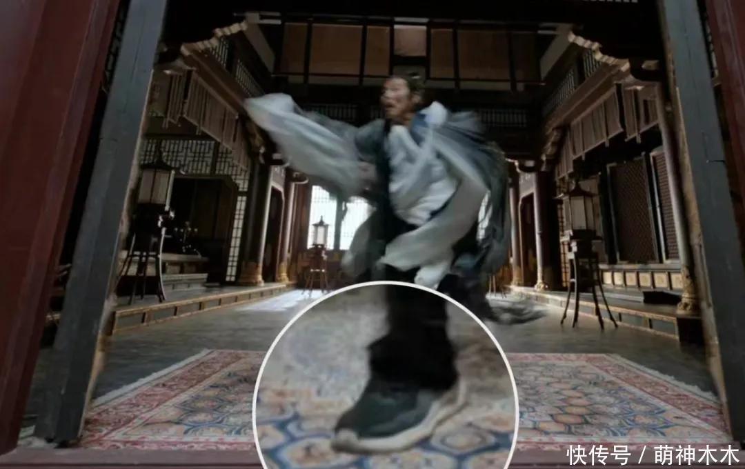 先是饰演庆帝的陈谈明,庆帝得知范闲“假死”后表情郁勃地跑了起来,在这经过中被镜头捕捉到驱驰中穿了默契鞋。默契鞋是当代用品,出当今古装剧中真的违和。