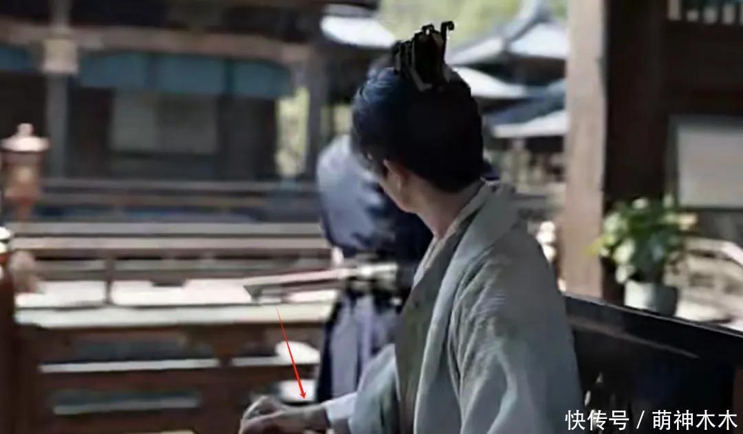 而在沈重一个量文学衣的镜头中,成衣手腕显露了,手上指挥了当代腕表,看起来很突兀。